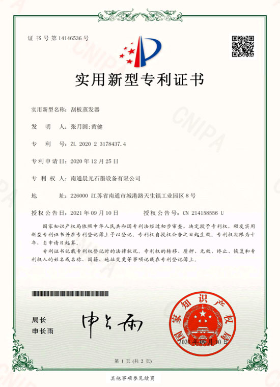 實用新型專利 :刮板蒸發器 專利號:ZL 2020 2 3178437.4